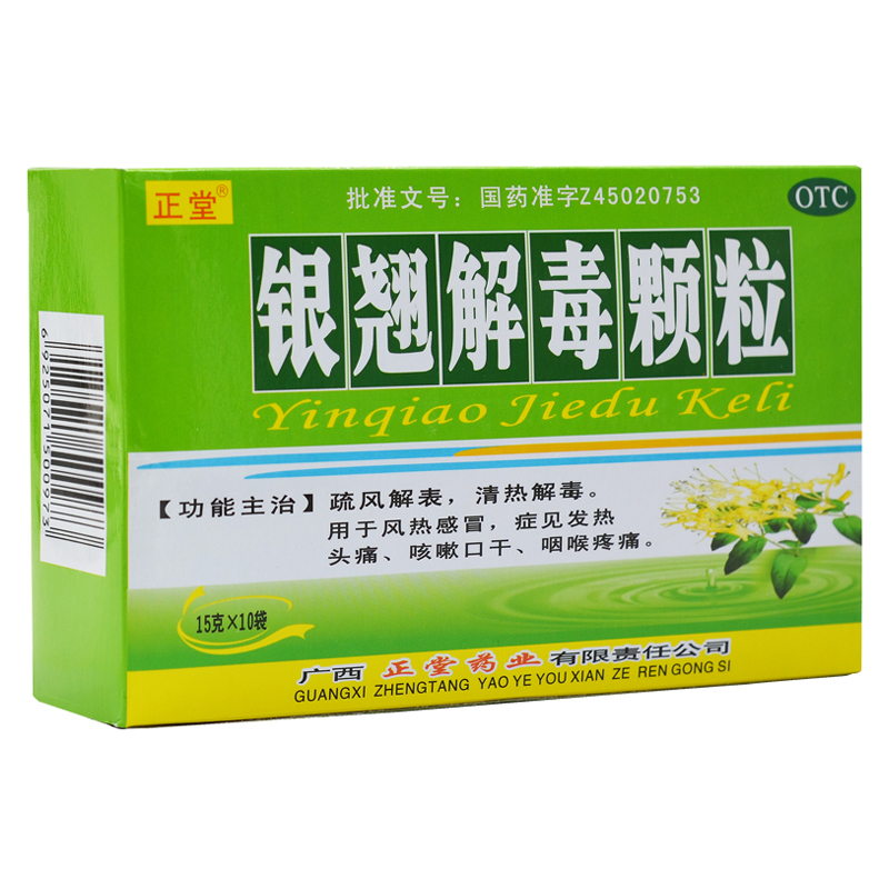 通用名 銀翹解毒顆粒 商品名 銀翹解毒顆粒 組 成 金銀花,連翹,薄荷,荊芥,淡豆豉,牛蒡子(炒),桔梗,淡竹葉,甘草 功 效 辛涼解表,清熱解毒 主 治 風熱感冒,癥見發(fā)熱頭痛,咳嗽口干,咽喉疼痛 規(guī) 格 顆粒劑,每袋裝15克,15g*10袋 用法用量 開水沖服,一次15克,一日3次 有效期 24個月 批準文號 國藥準字Z44020191 執(zhí)行標準 《中華人民共和國藥典》2010版第一部
